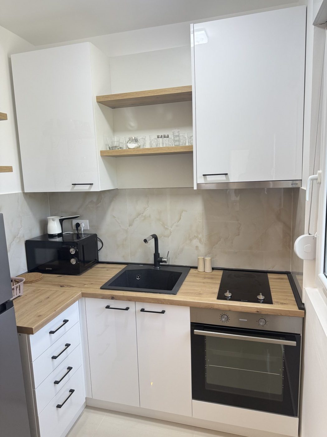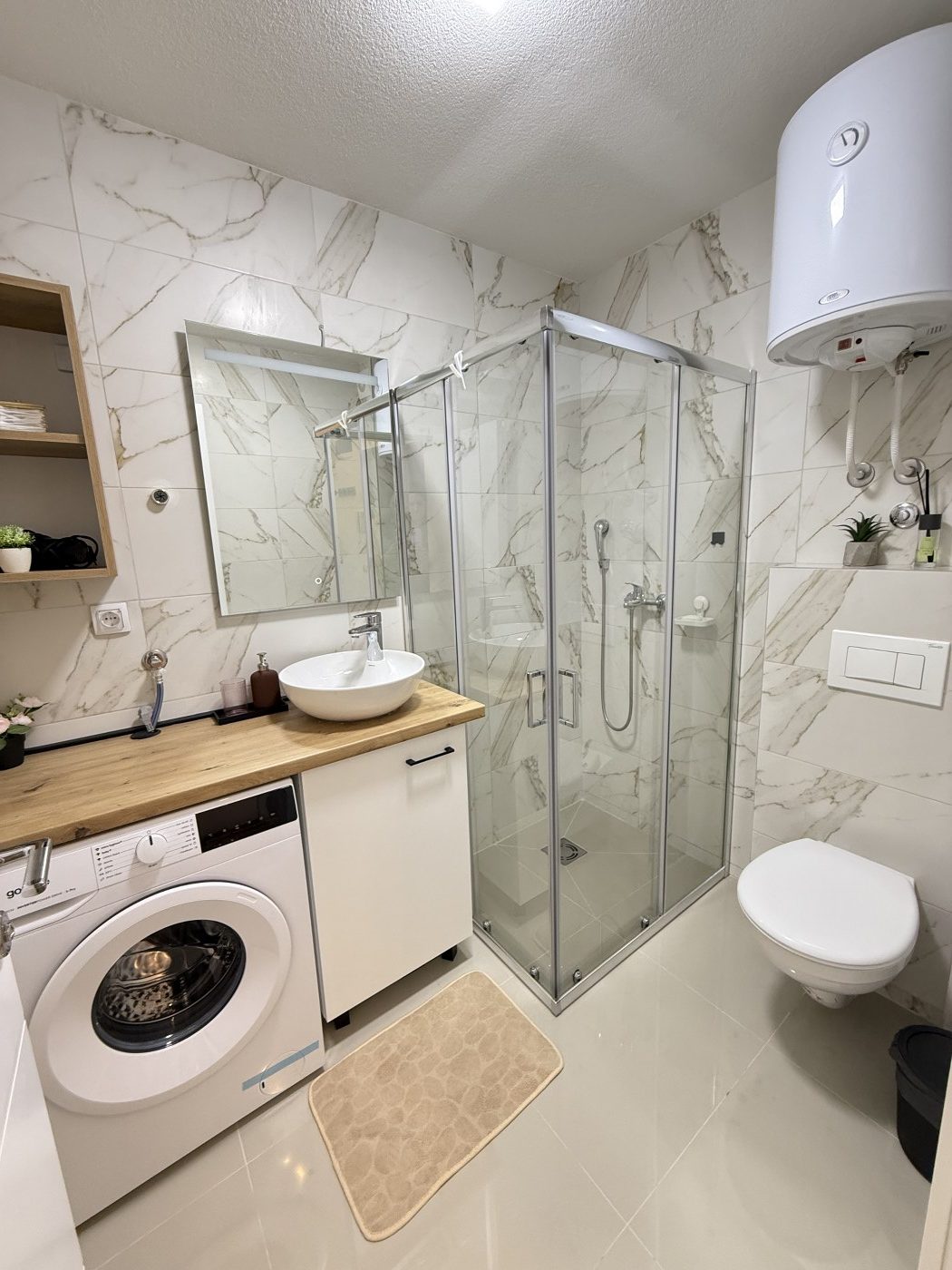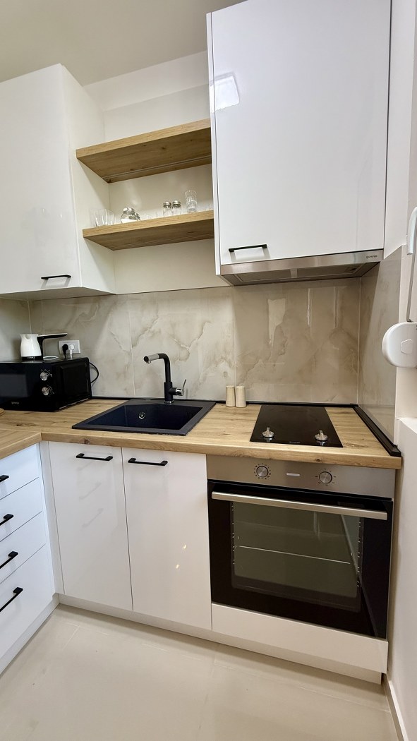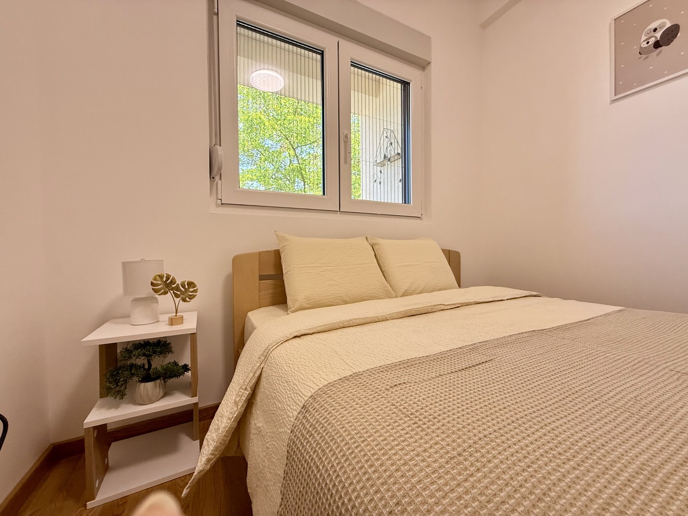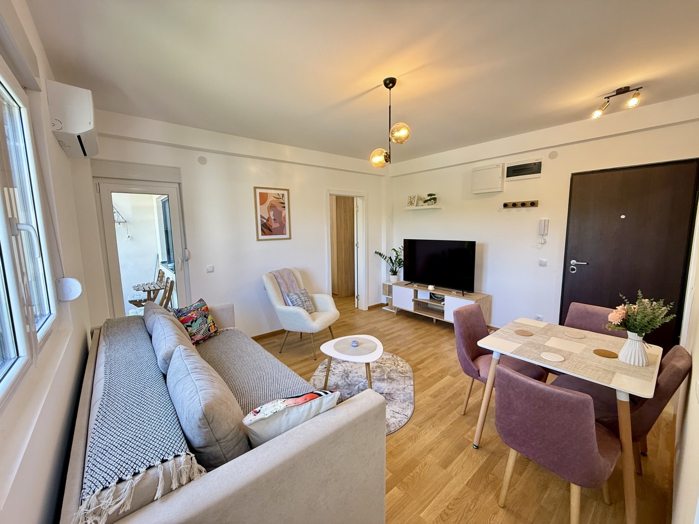 Apartman raspolaže spavaćom sobom sa francuskim ležajem, prostranim dnevnim boravkom sa garniturom na razvlačenje, trpezarijom i kompletno opremljenom kuhinjom, kupatilom, hodnikom i terasom koja pruža predivan pogled na okolnu prirodu.
